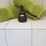 A fürdőszobában van walk-in zuhanykabin és fürdőkád.